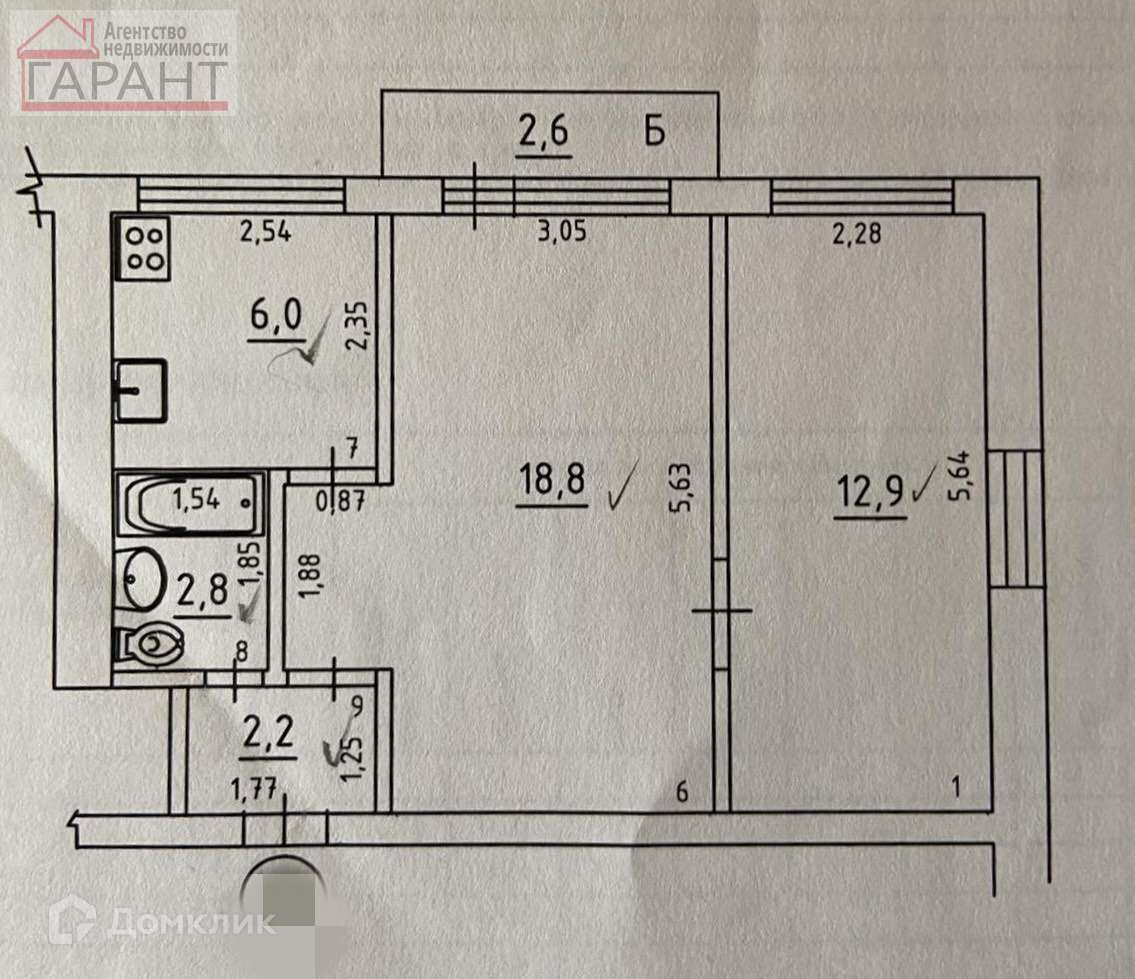 Балкон, лоджия 1 балкон