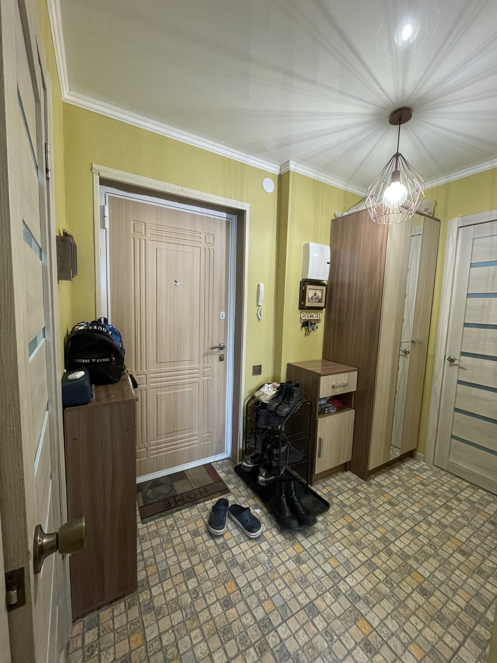Уютная Евродвушка с большой гостевой и спальной зоной + полноценная детская комната (в вашем варианте это может быть спальня). Гардеробная и просторный санузел. (На фото прилагаю вариант до и после перепланировки, узаконивать ее не нужно - квартира без несущих стен, всегда сможете сменить планировку на свой вкус) .