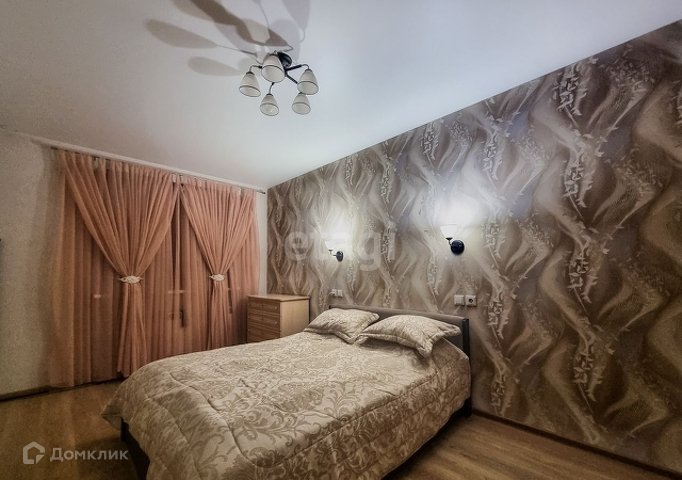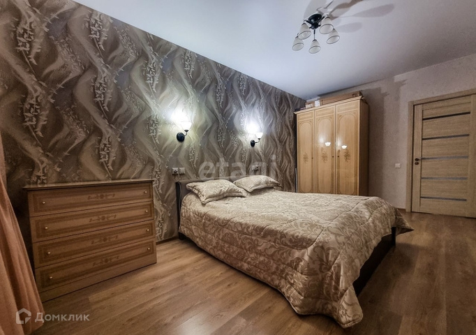 - просторная спальня, на полу уложен ламинат, натяжной потолок. Остается кровать, остальное — по договоренности;