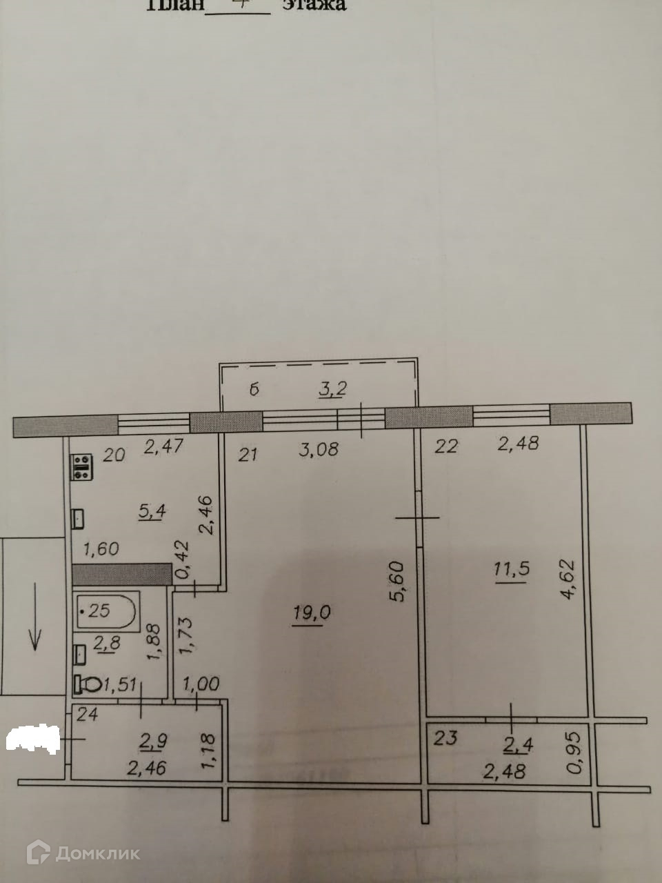 Балкон, лоджия 1 балкон