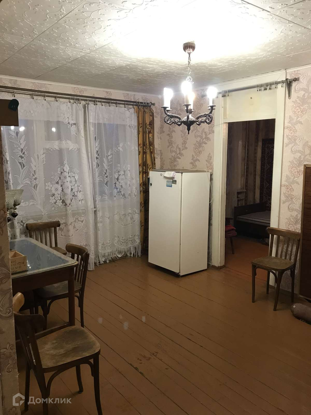 Жилая площадь 44 кв/м, комнаты смежные, 19 и 11,5 кв/м, кухня 5,4 кв/м. Заменены радиаторы и трубы водоснабжения. Железная входная дверь, деревянные окна.