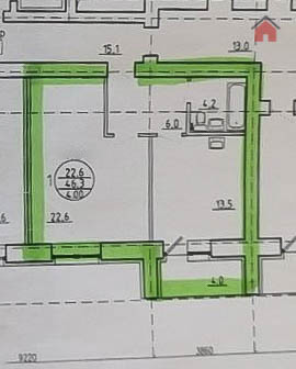 Жилая площадь 22.6 м2