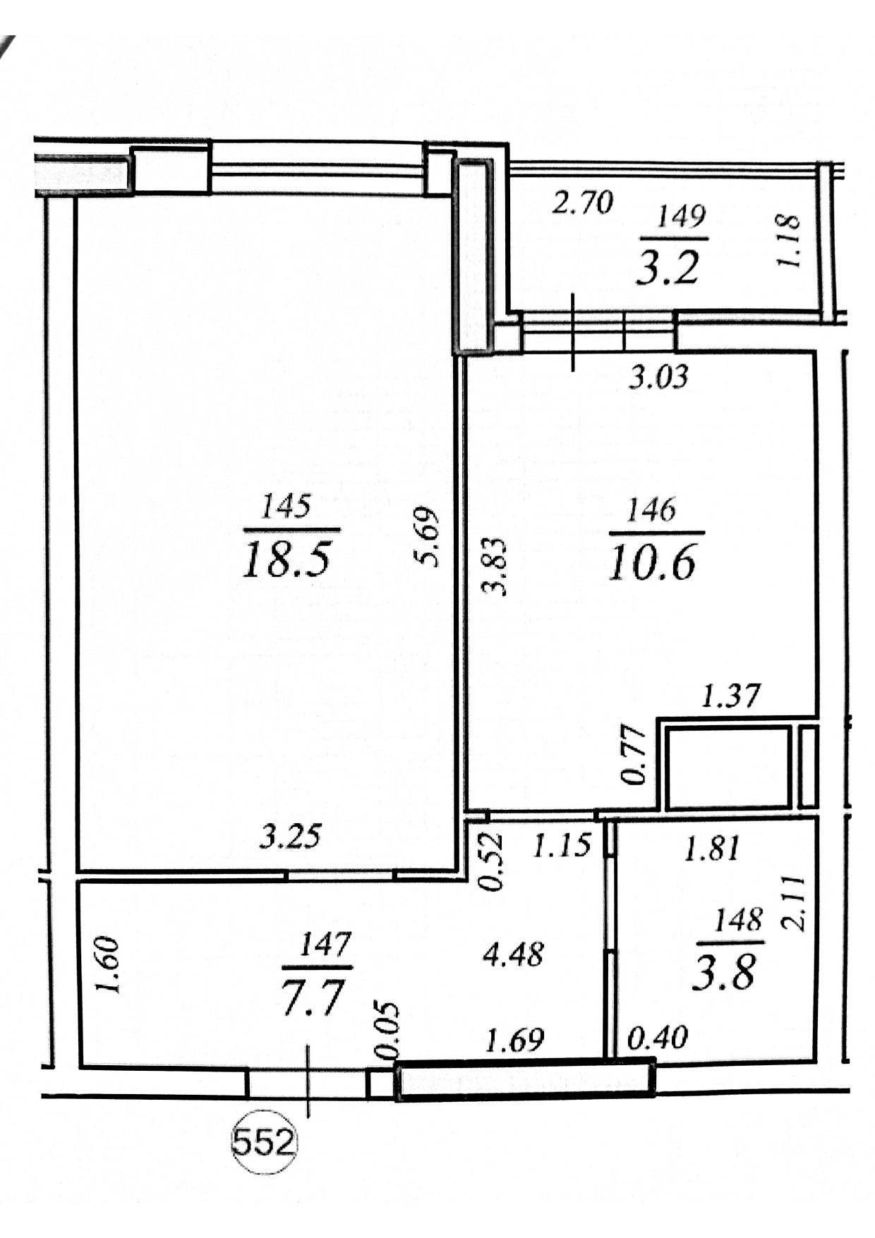 Жилая площадь 18.5 м2
