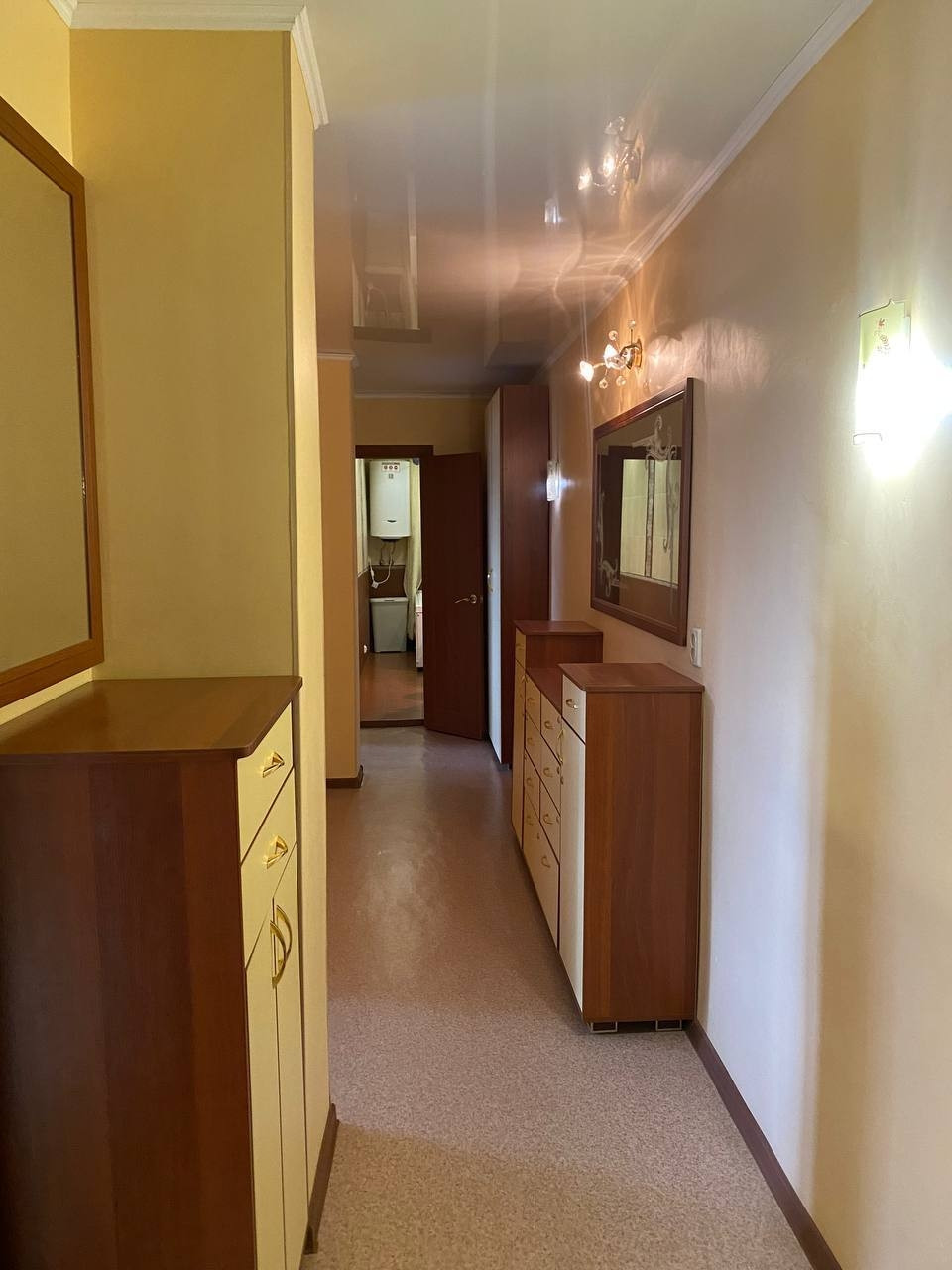 В доме отличная шумоизоляция. Перед входом в квартиру есть карман на две квартиры, в котором стоят два наших огромных раздельных шкафа для хранения. Новая качественная металлическая дверь. Площадь квартиры 69,4 кв.м. В доме нет горячей воды, поэтому в ванной и на кухне имеются водонагреватели (100 и 30 литров) марки Ariston. Сделан качественный ремонт: новая электропроводка, сантехника. На кухне и в гостиной имеются сплит-системы. На всех окнах установлены решетки (безопасность детей - превыше всего). Новые биметаллические, многосекционные радиаторы во всех комнатах. По всей квартире установлены натяжные потолки. Уютная, вместительная кухня 11,3 кв.м. Просторный коридор 11 кв.м. Гардеробный зеркальный шкаф, два комода, зеркала. В конце коридора (около ванной) вместительный, огромный шкаф, в котором можно хранить, например, весь инвентарь, либо сантехнические принадлежности. С коридора идёт вход на кухню, в первую спальню, ванную и гостиную, а с гостиной вход во вторую спальню. В ванной установлен электрический тёплый пол, принудительная вентиляция. Ванна с гидромассажем. Хорошее месторасположение дома, рядом ТЦ, в шаговой доступности мойка самообслуживания, круглосуточный магазинчик, магнит, заправки. 4 минуты ходьбы до остановки, 2 мин до ДиПорта. Квартира находится в ипотеке Сбербанка.