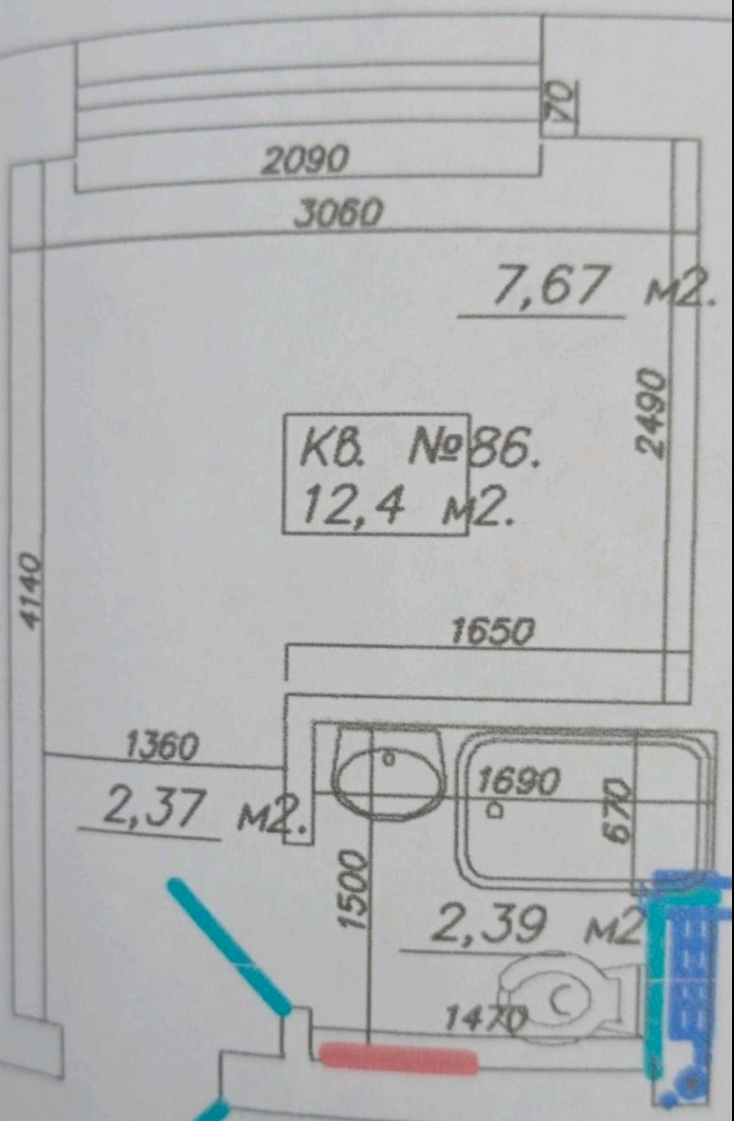 Общая площадь 12.4 м2