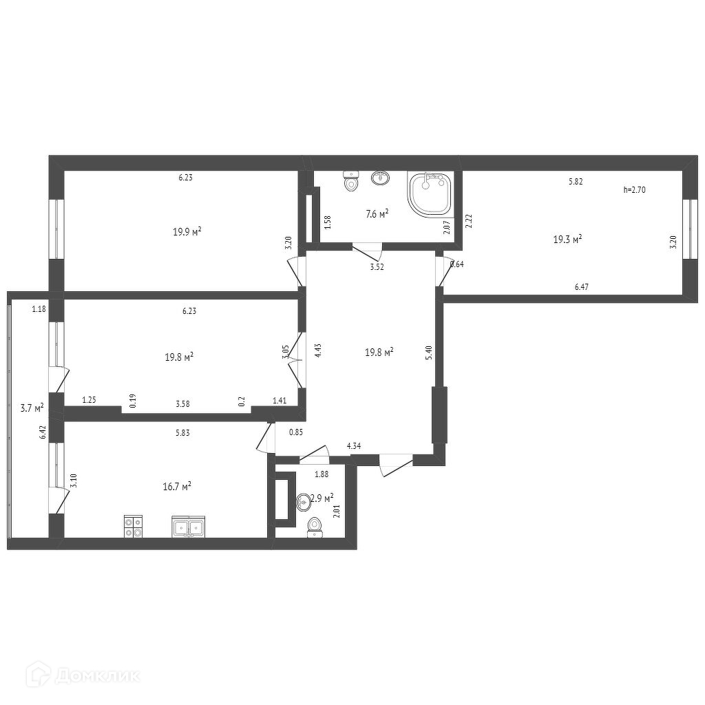 В квартире предусмотрено 2 сан технические комнаты. Один из с/у составляет 7.6 м2!!!