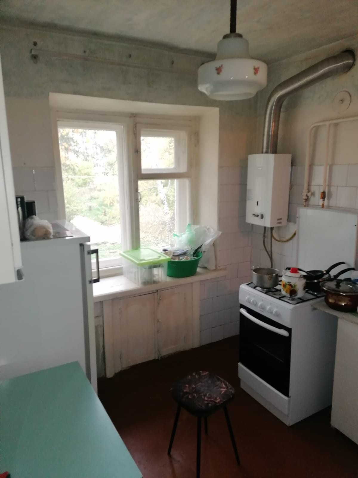 Стоят счетчики на воду, свет. Есть колонка, газ. Квартира без балкона.