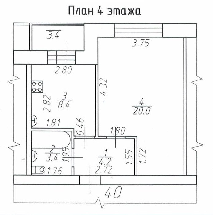 Общая площадь 37,7 кв.м.