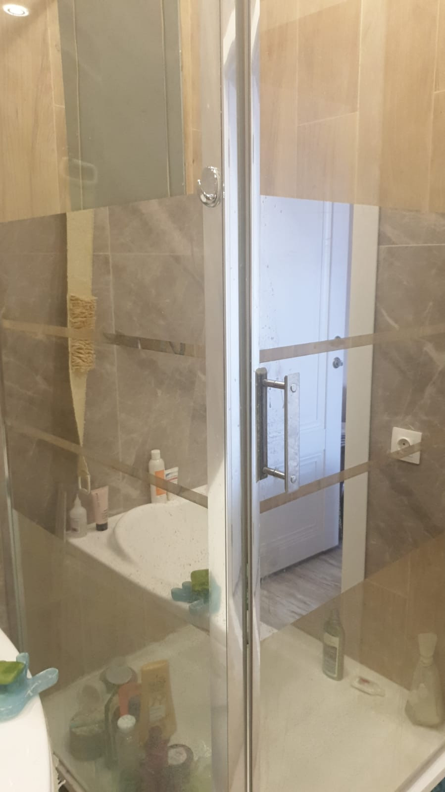 на полу-испанская плитка, сантехника Grohe.