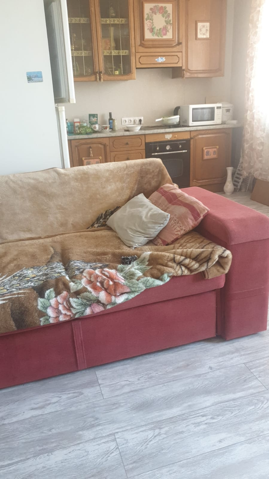 Кухня совмещённая с гостиной 30 кв. м. плюс 2 комнаты с окнами на разные стороны.
