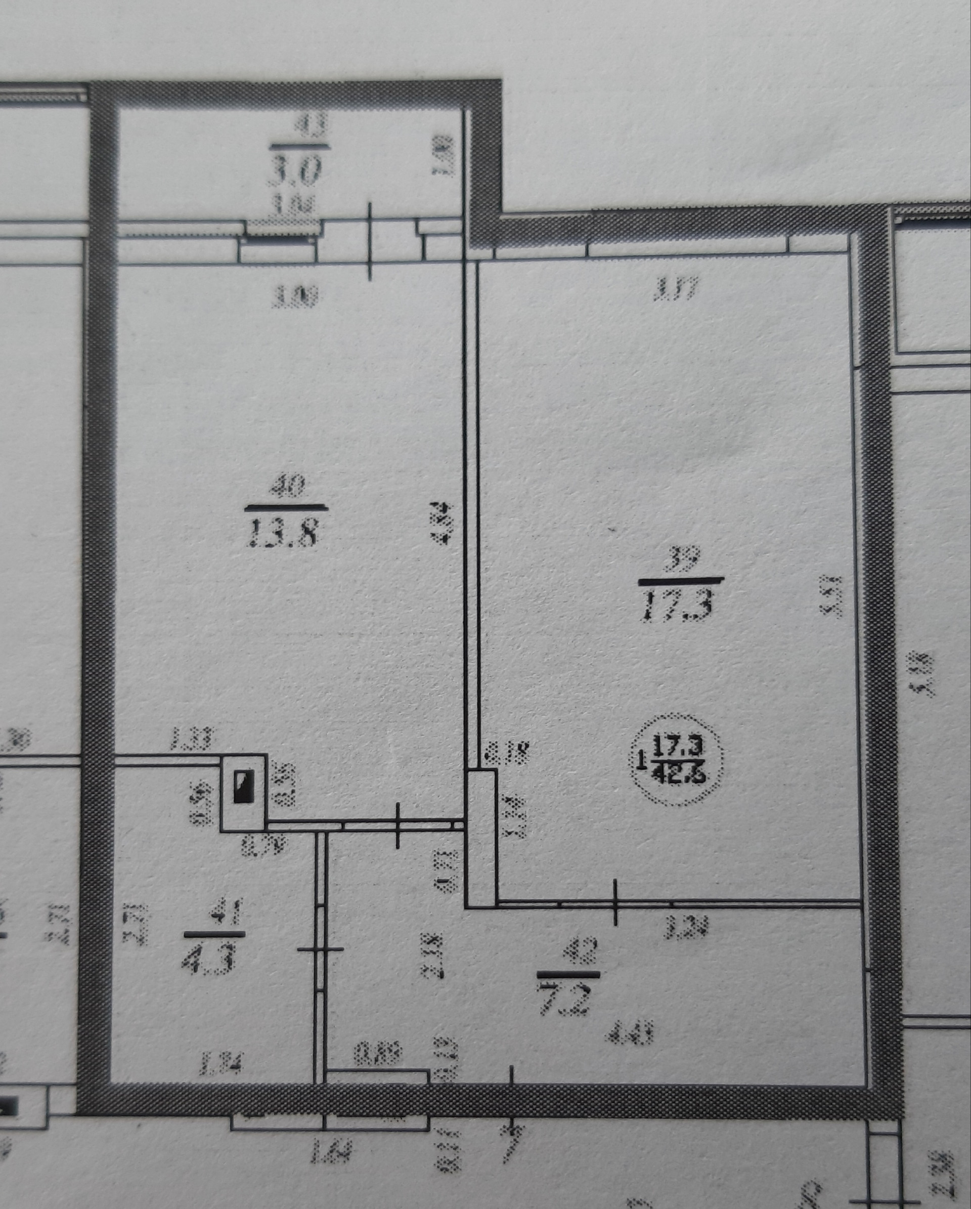 Жилая площадь 17.3 м2