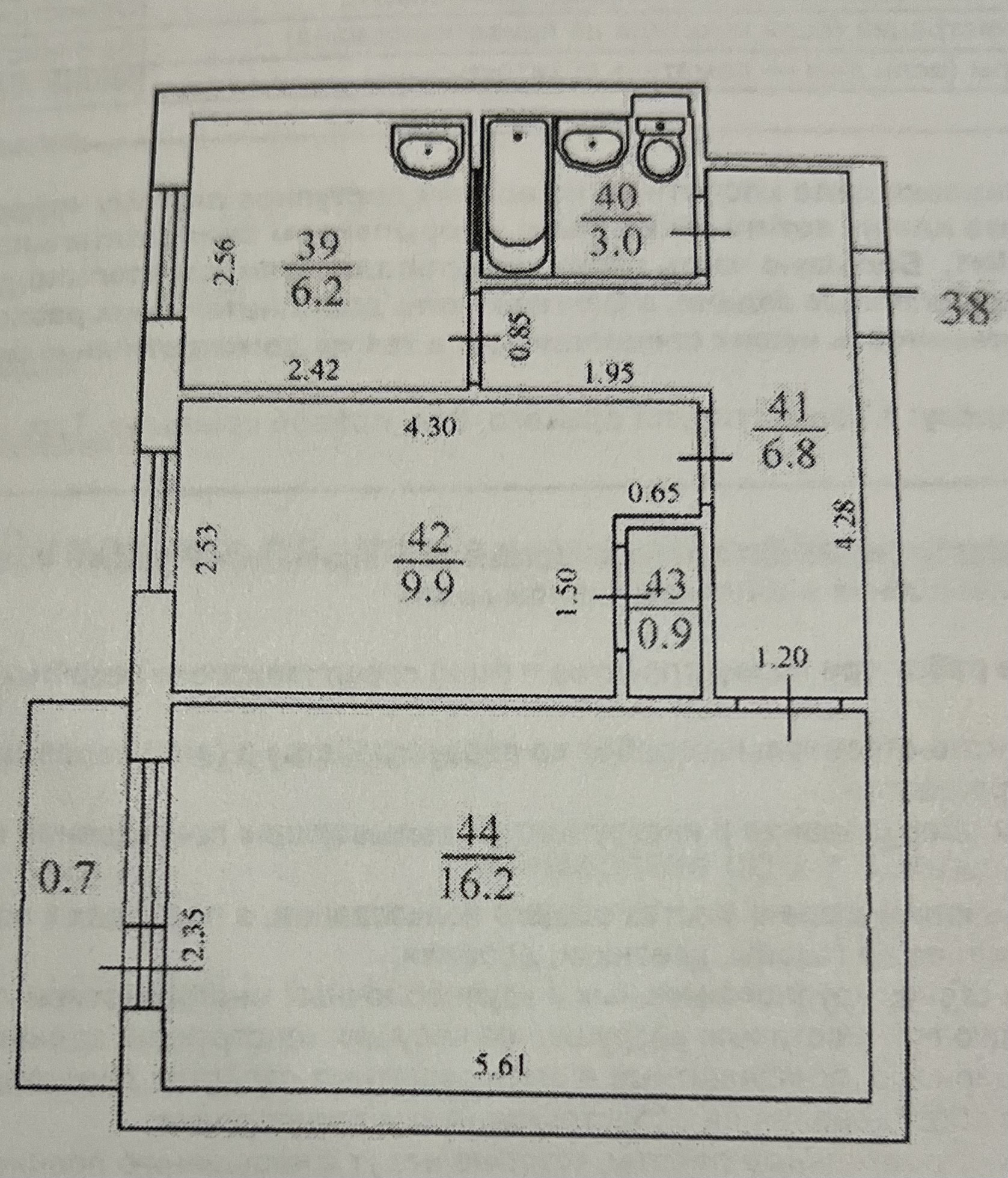 Общая площадь 43 м2