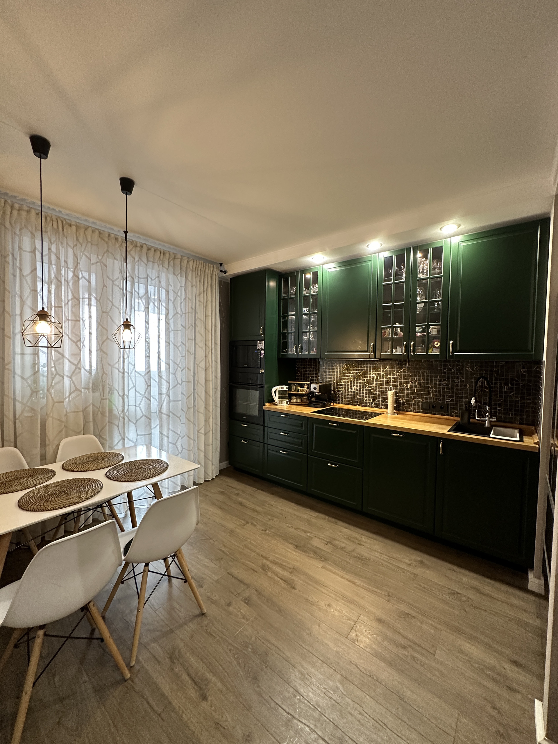 Сделан хороший ремонт с использованием качественных материалов. Все продумано до мелочей и использовано максимум полезной площади.