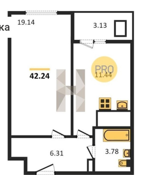 Жилая площадь 19 м2