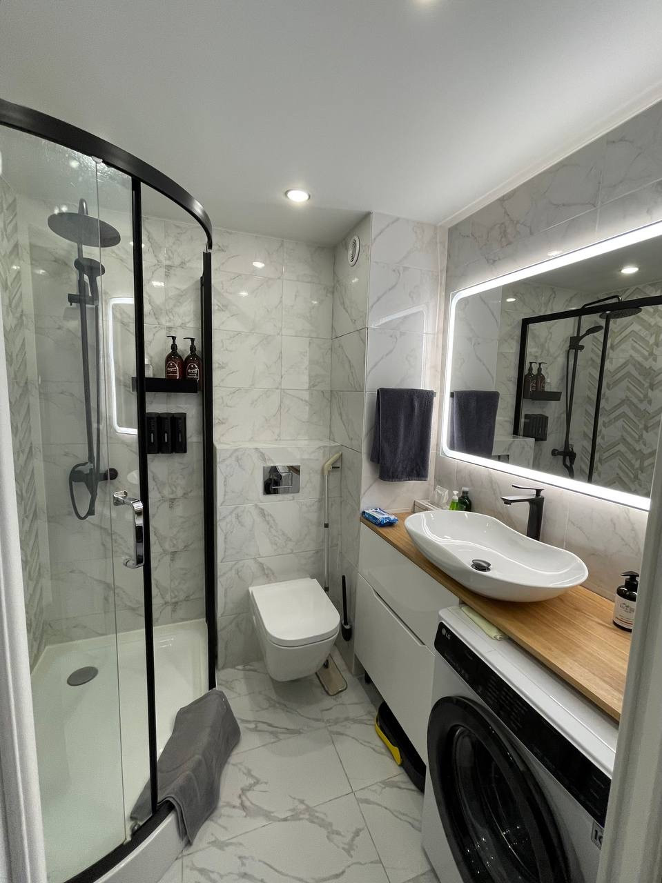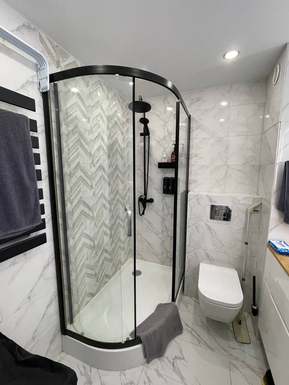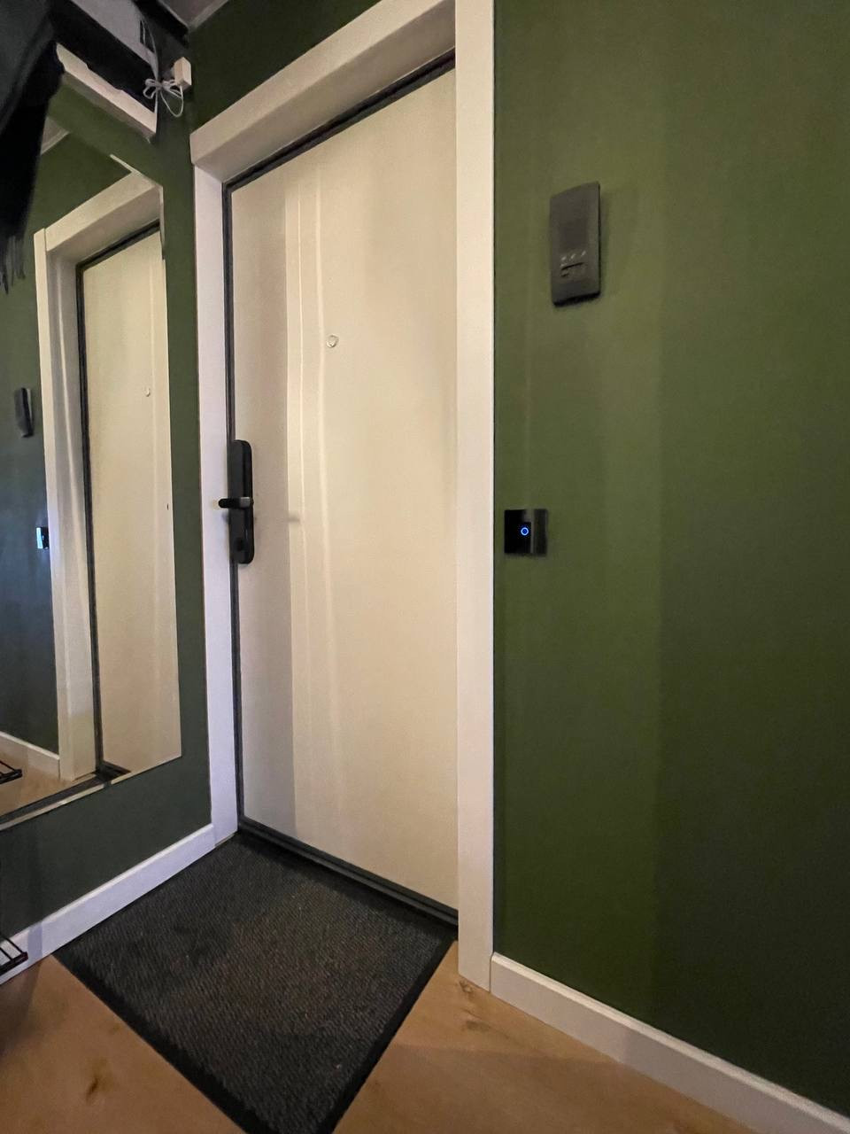 - элементы умного дома: входной замок, освещение, полотенцесушитель,