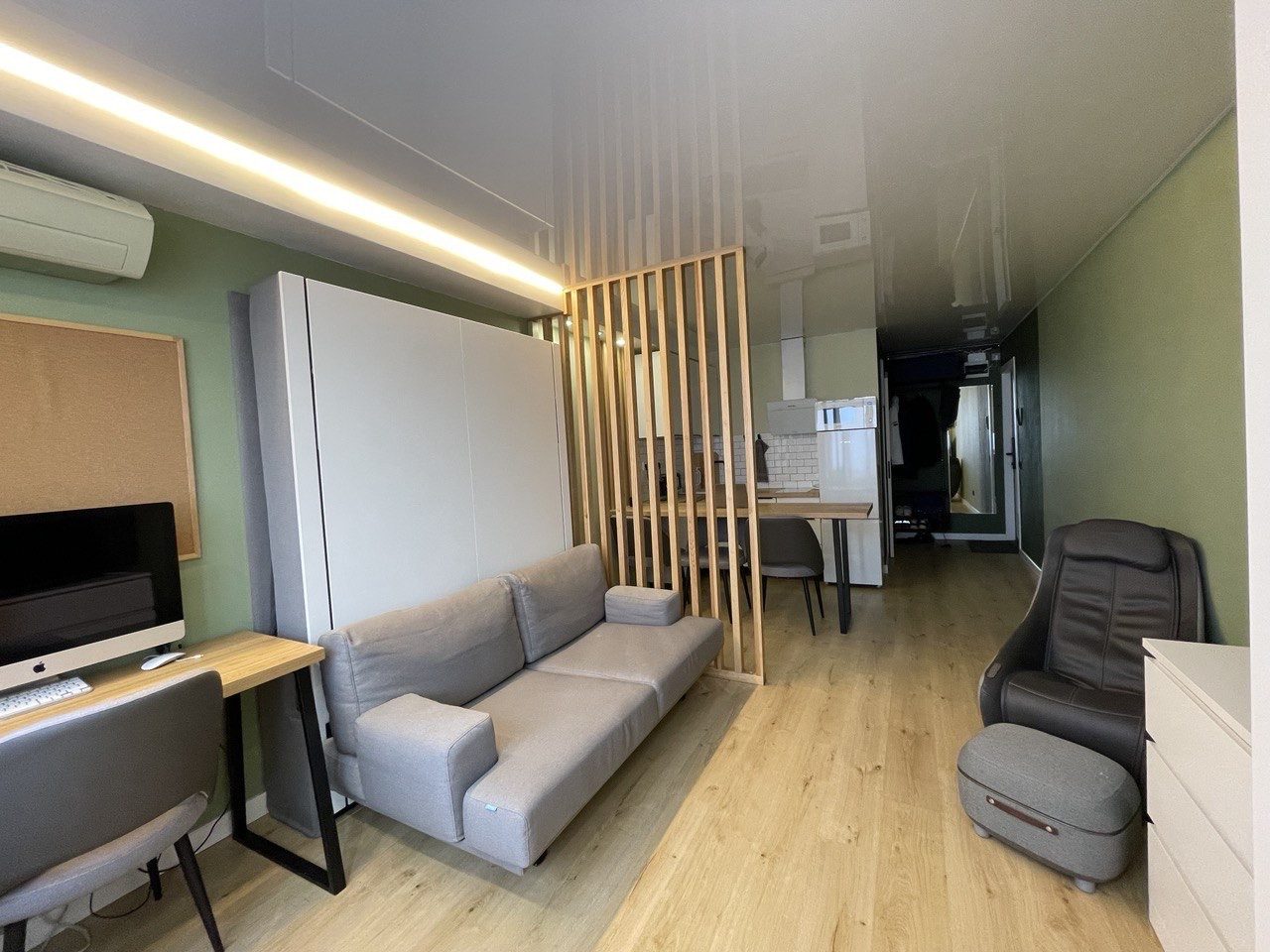 - Кровать-трансформер Olissys. На диван из стены опускается полноразмерная кровать 160 на 200,