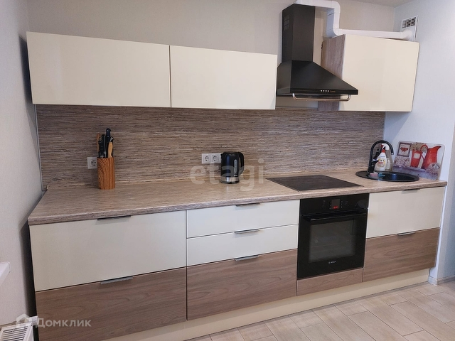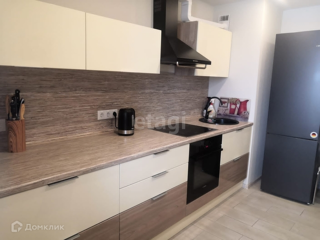 Ремонт выполнен в светлых тонах. На балконе установлены стеллажи. Большая кухня с красивым кухонным гарнитуром, встраиваемая техника BOSCH гардеробная, в коридоре на полу матовая плитка, в комнате - ламинат. Мебель остаётся частично. Кондиционер. Площадь квартиры 41м кв.