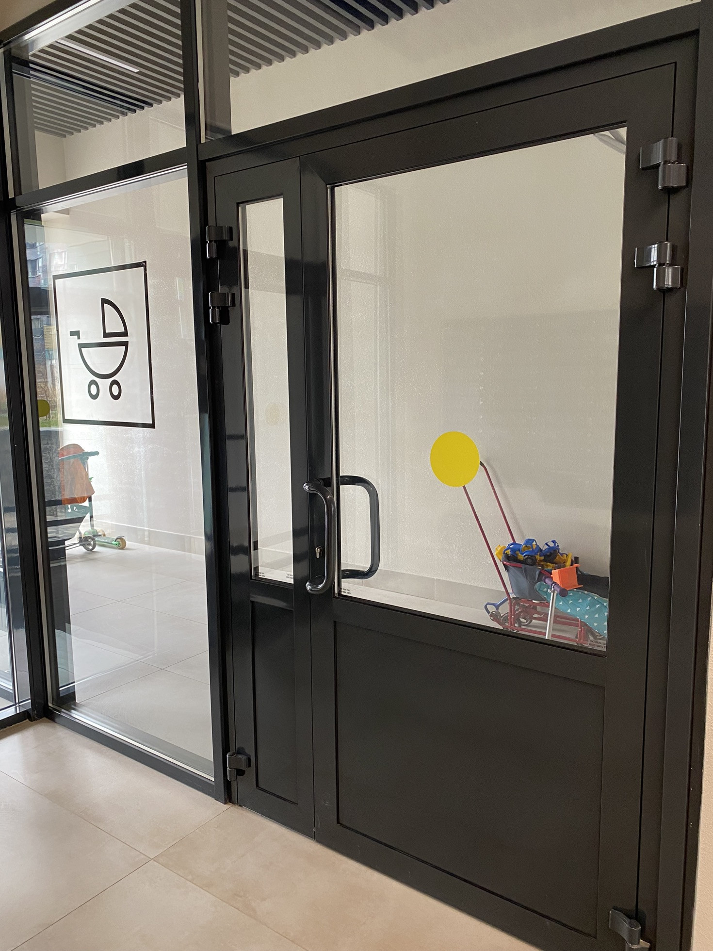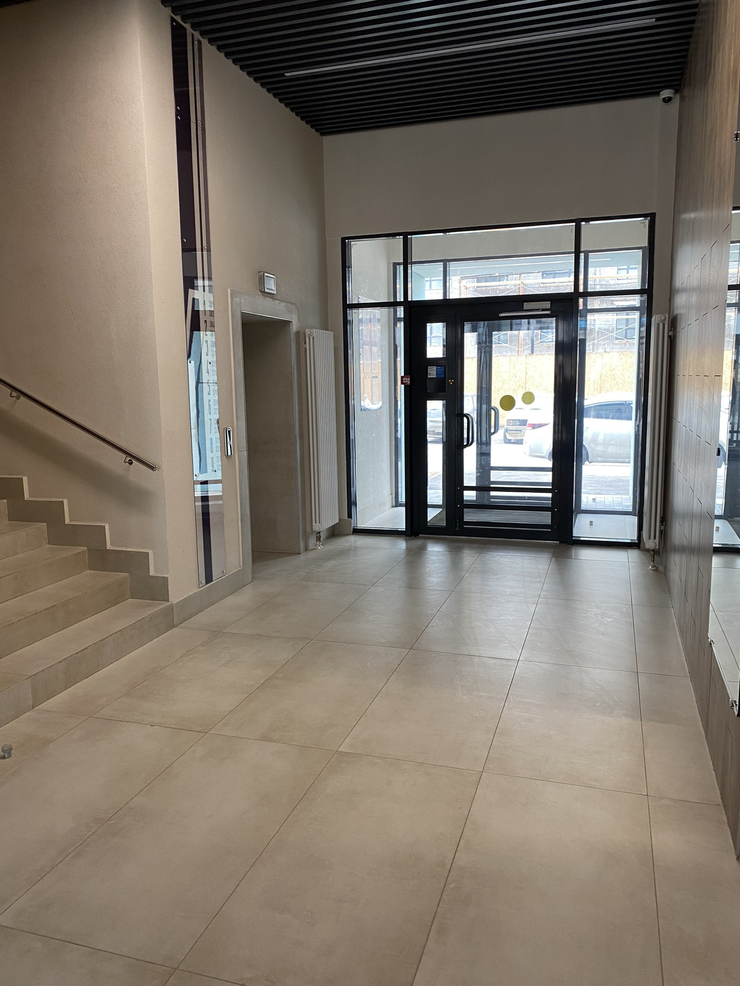 Уютные зоны ожидания с высокими потолками, входные зоны на уровне земли с помещением для хранения велосипедов и колясок