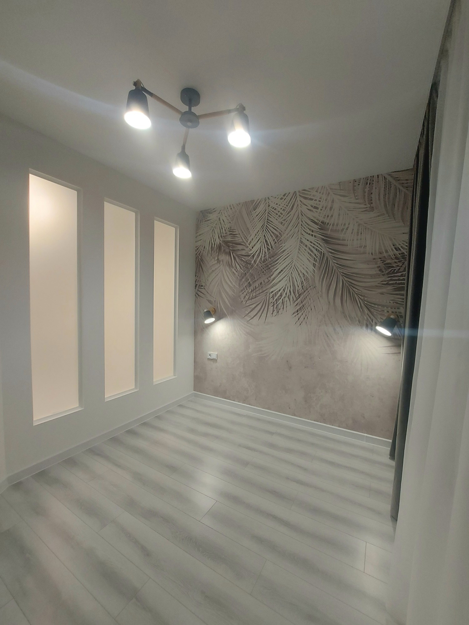 -в каждой комнате тюль и занавески