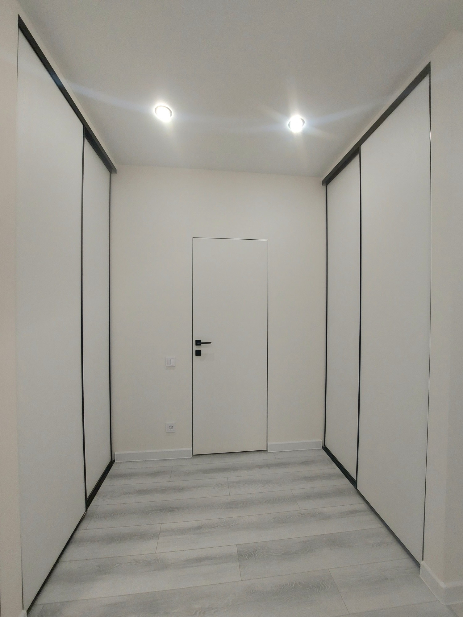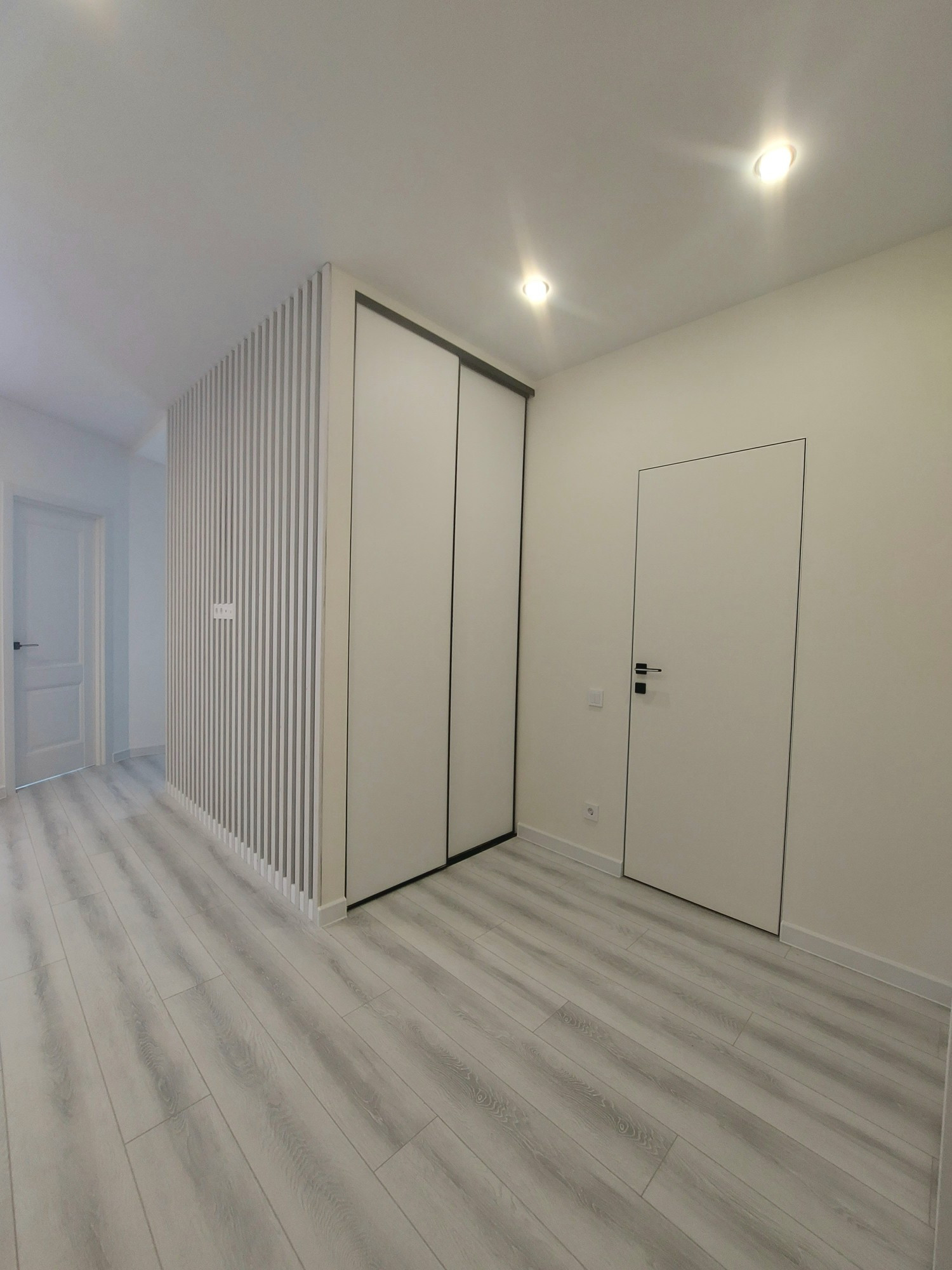-в холле 2 шкафа купе невидимки , где есть место под вещи, интернет роутер и выделено место для постирочной(можно поставить машинку и сушилку)