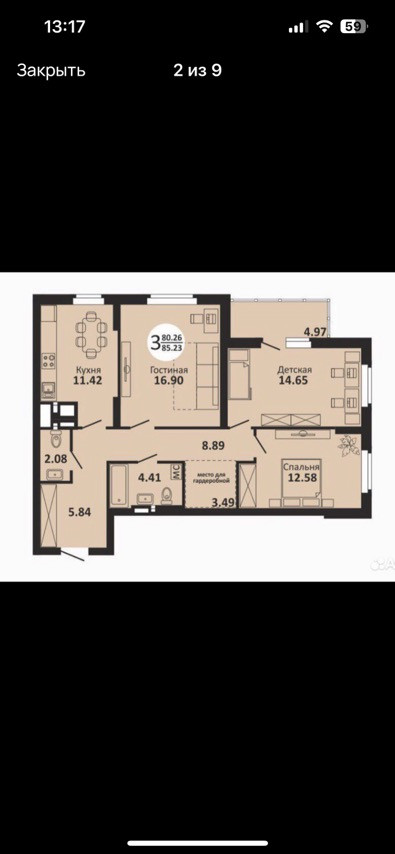 Общая площадь 84 м2