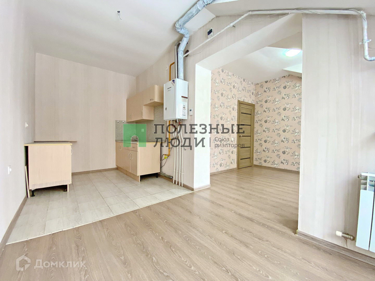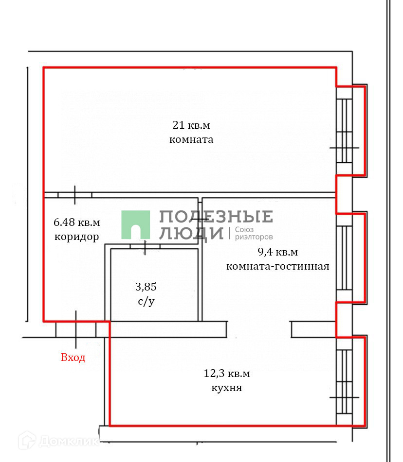 Квартира просторная, светлая за счет панорамных окон в комнате и на кухне и высоких потолков почти под 3 метра. Площадь квартиры 52,8 кв.м, кухня 12,3 кв.м, комнаты 21 и 9,4 кв.м, ванная комната 3.85 кв.м, коридор 6,48 кв.м. Квартира с чистовой отделкой: пол - плитка (с/у и кухня в зоне приготовления пищи), ламинат, на стенах наклеены - обои , туалет отделан плиткой, установлена сантехника, пластиковые окна.