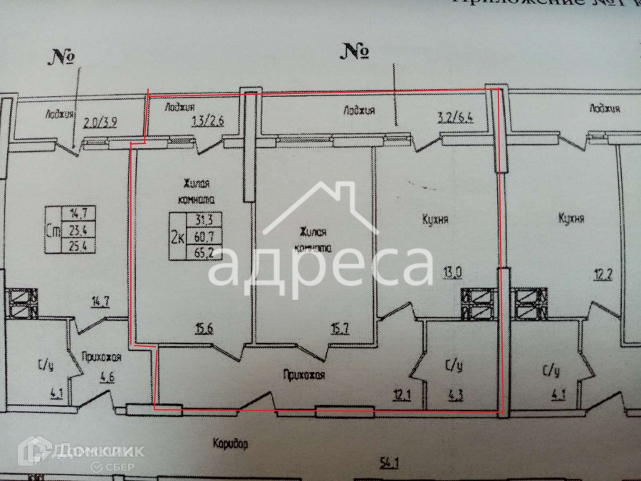 Общая площадь 64.6 м2