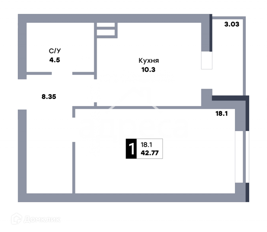 Общая площадь 42.9 м2