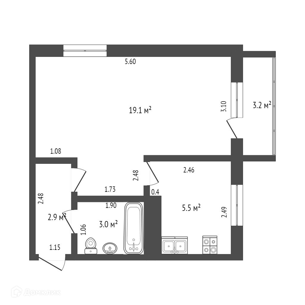 Общая площадь 30.9 м2