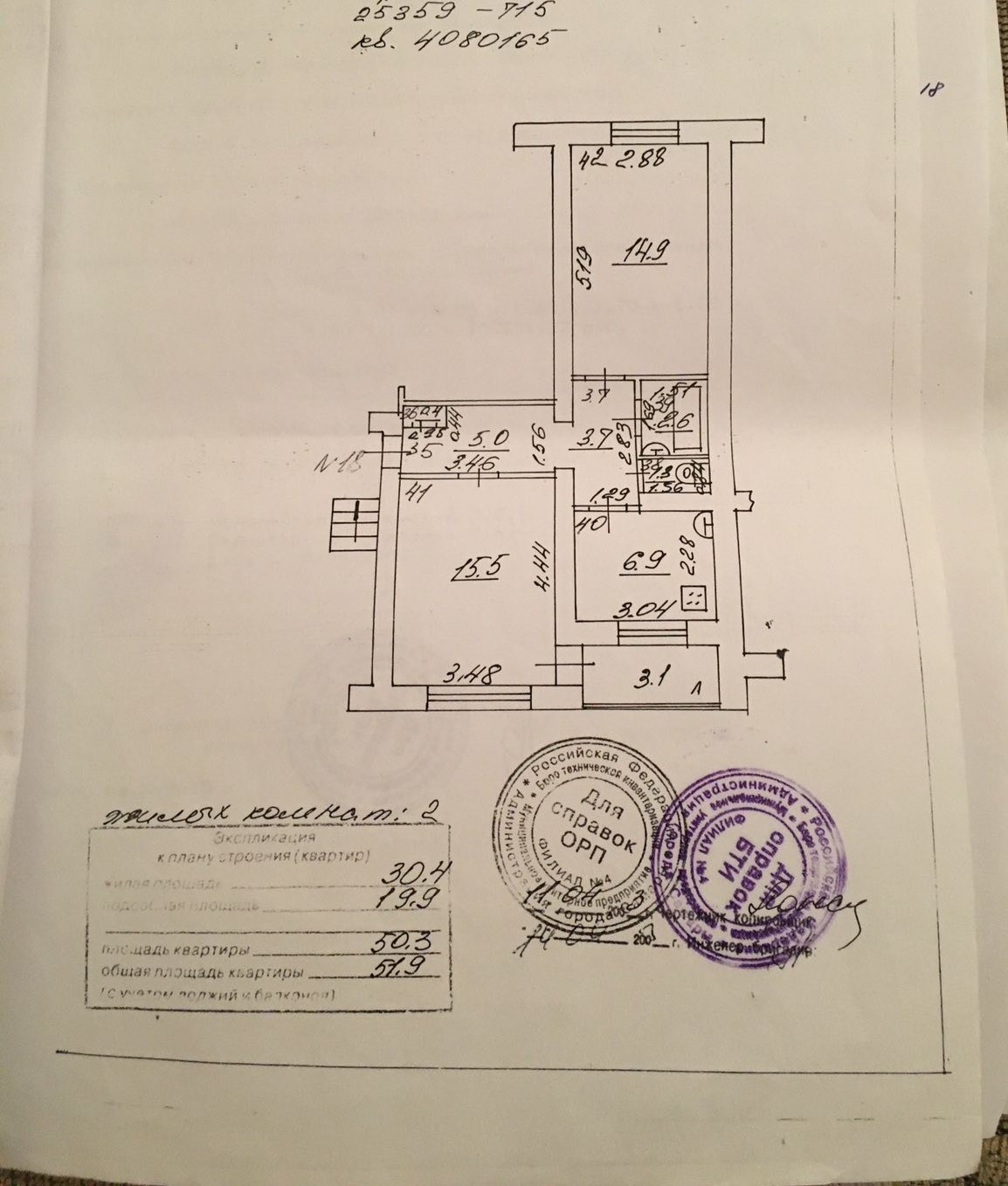 Общая площадь 50.3 м2