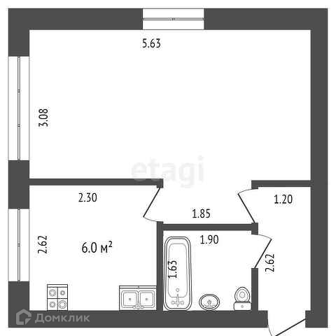 Площадь кухни 6 м2