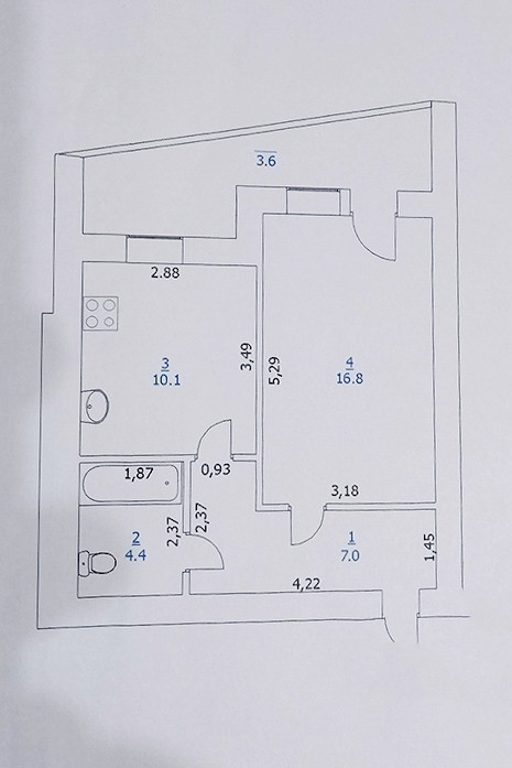 Общая площадь 42 м2