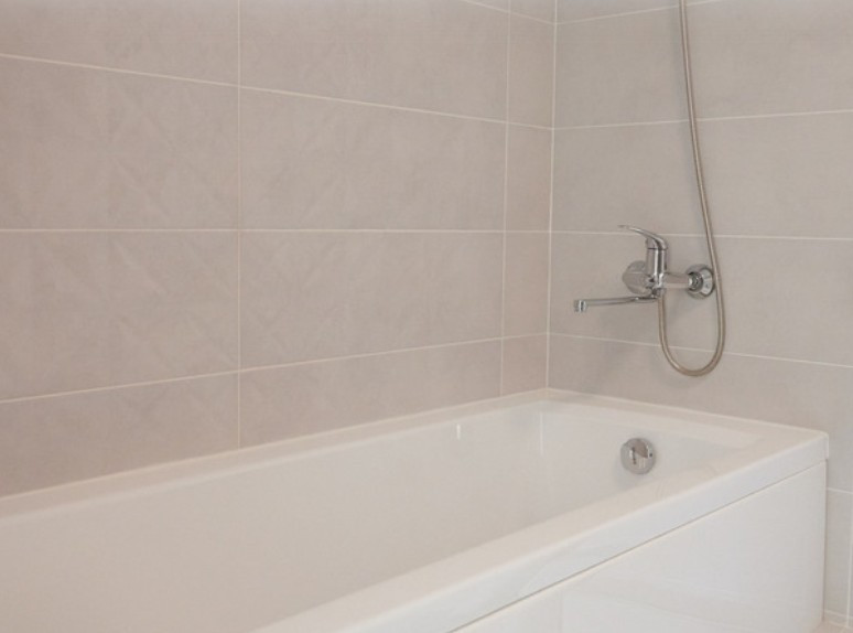 - пол - керамическая плитка и ламинат с установкой плинтусов