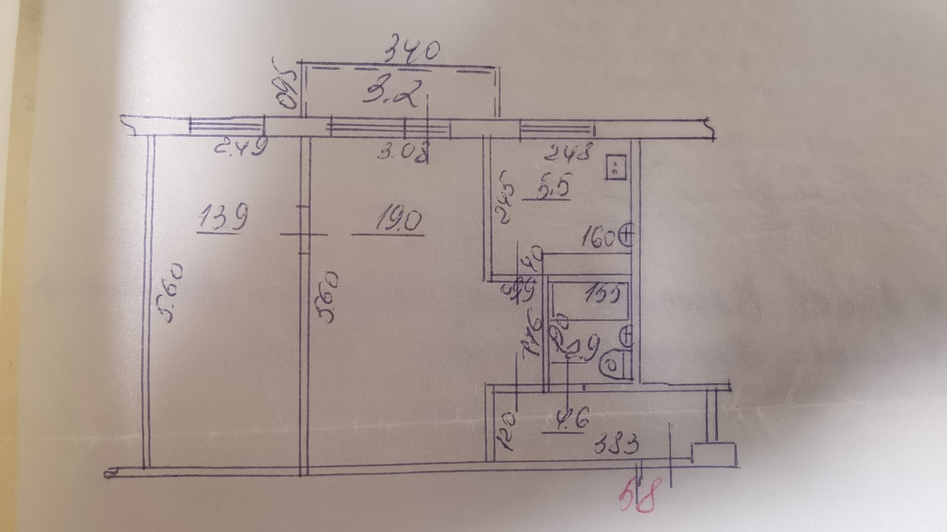 Жилая площадь 32.9 м2