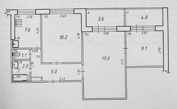 Площадь кухни 7.6 м2