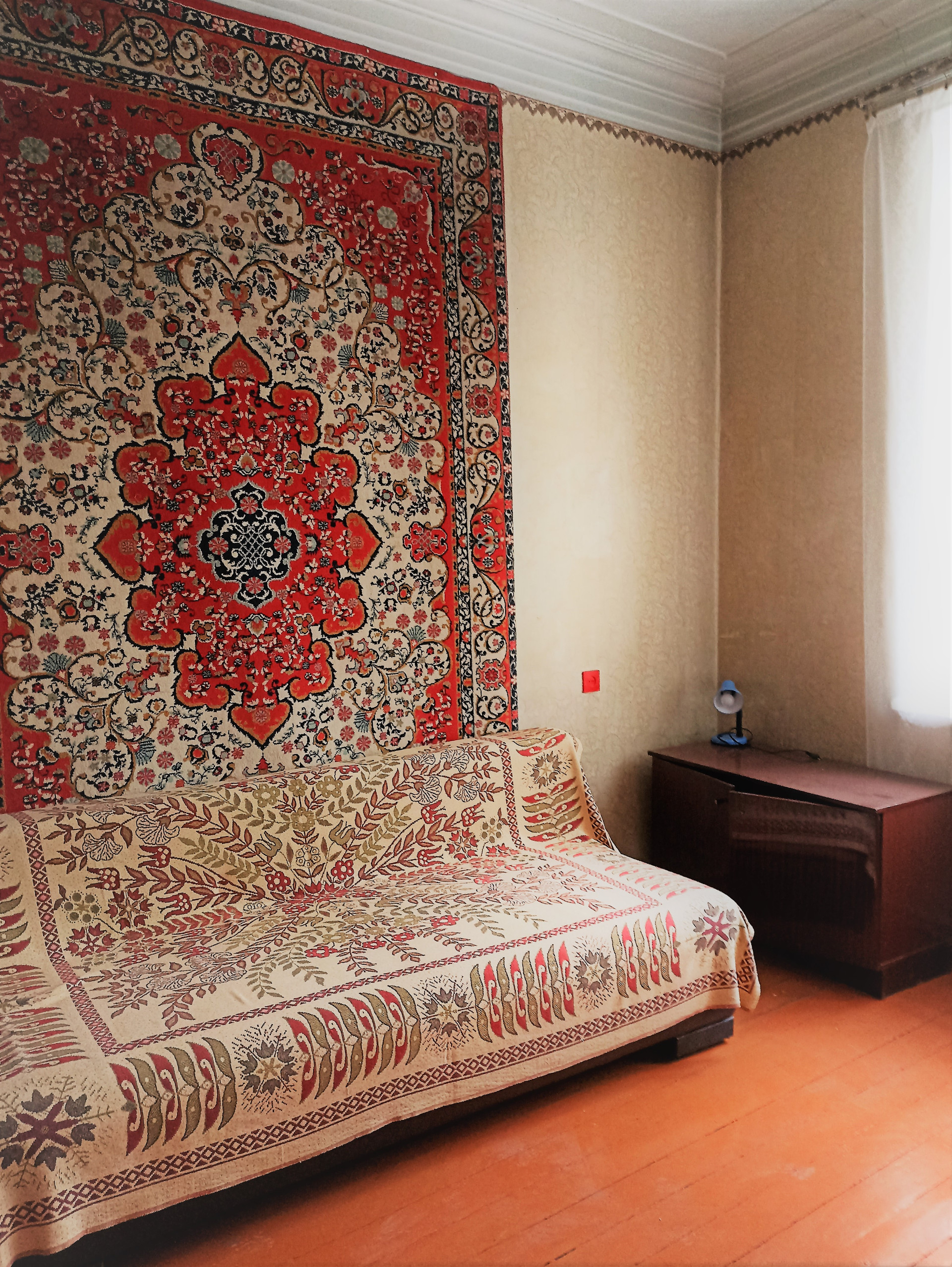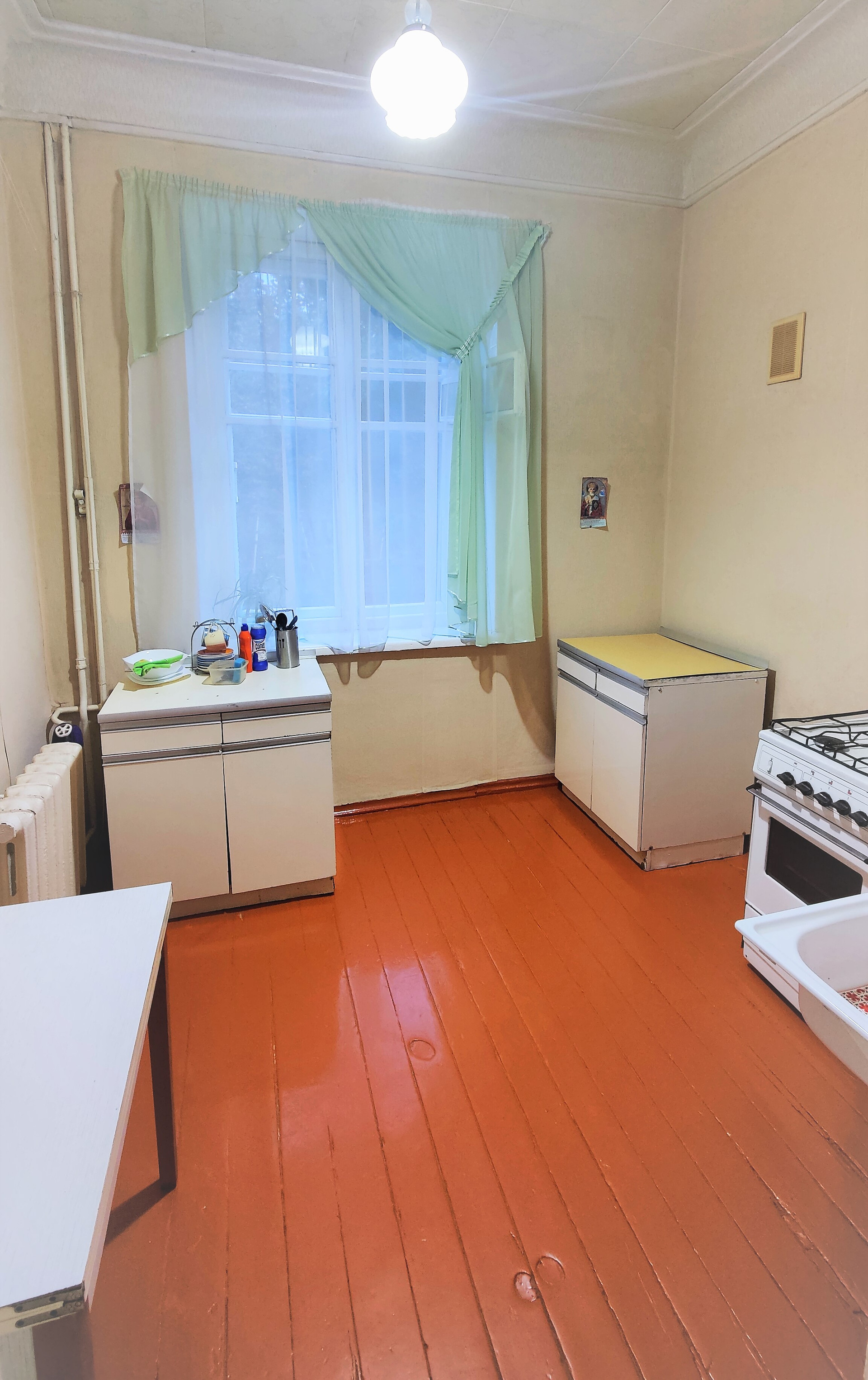 1-й этаж (высокий)  4-х этажного дома, "сталинка" (потолки 3,2 м), спокойный район, оборудованный двор, цветы и пение птиц!