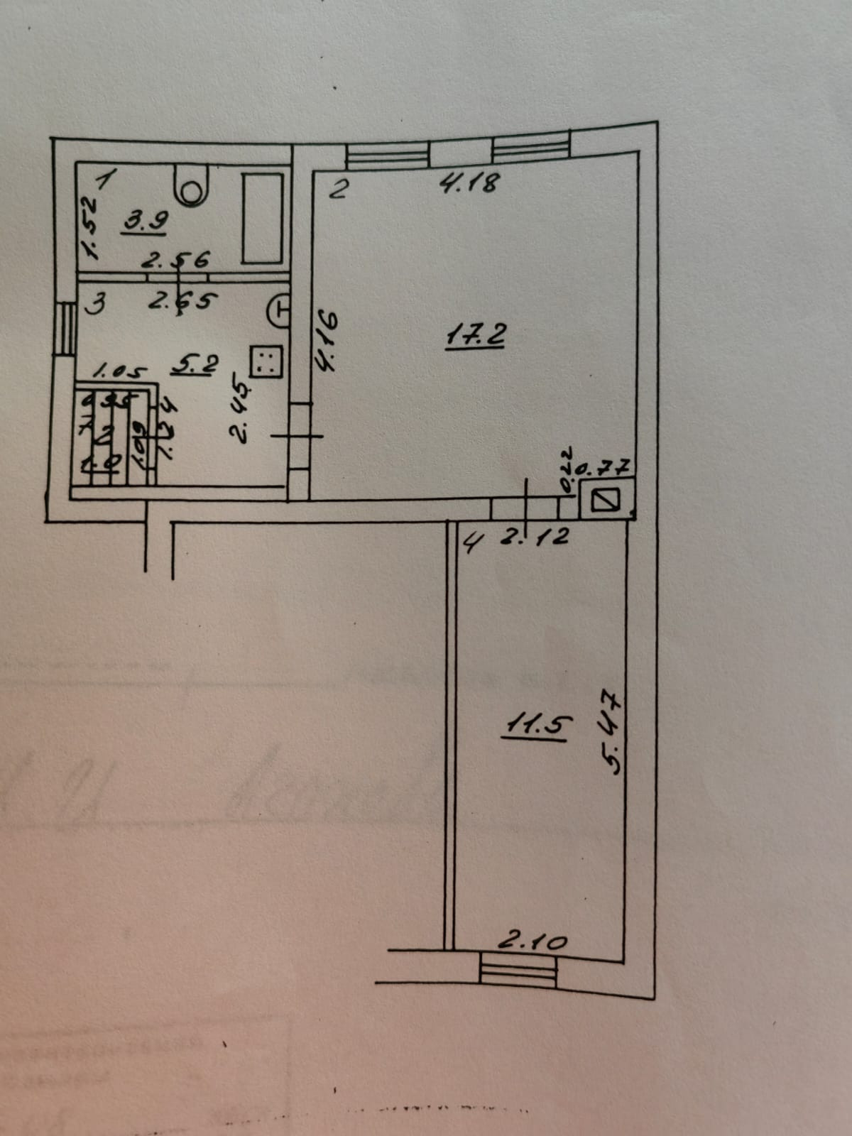Площадь кухни 5.2 м2