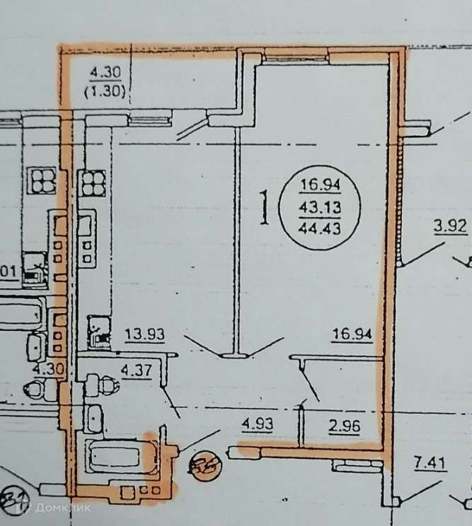 Общая площадь 44 м2