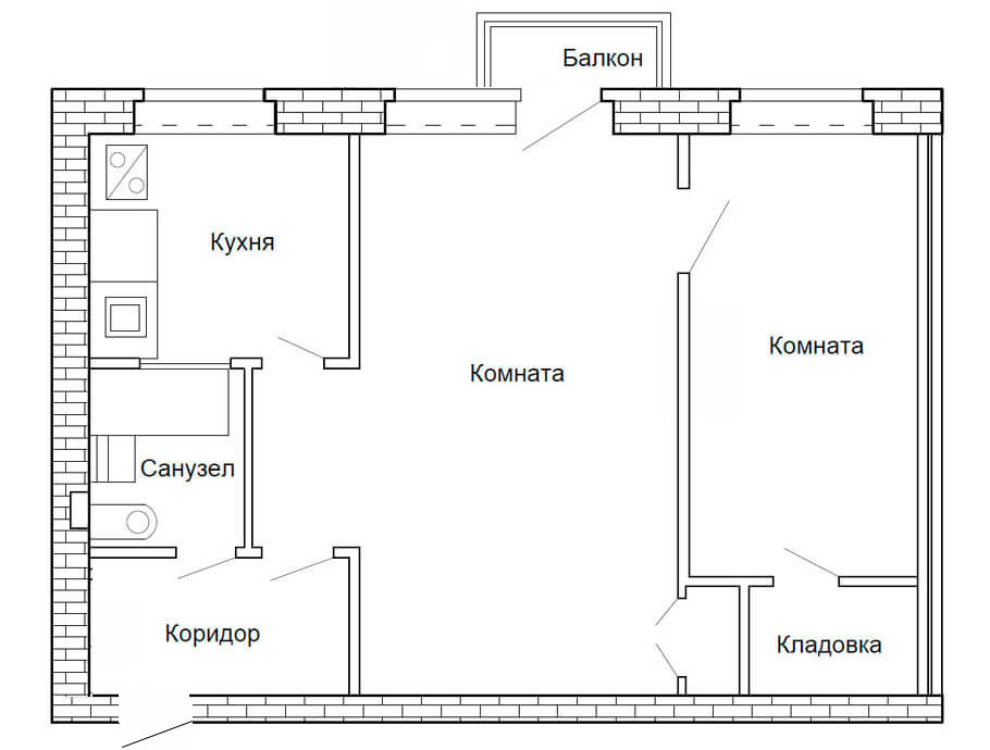 Балкон, лоджия 1 балкон