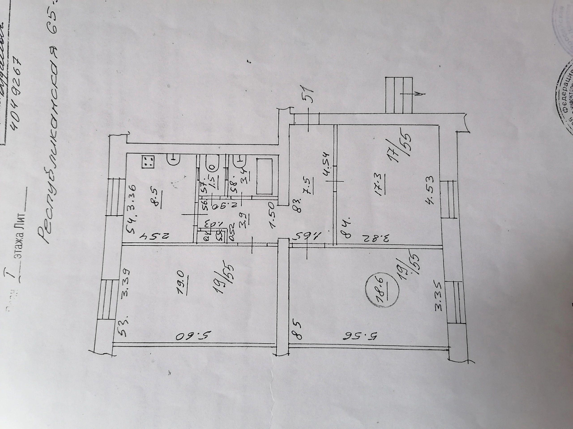 Жилая площадь 54.9 м2