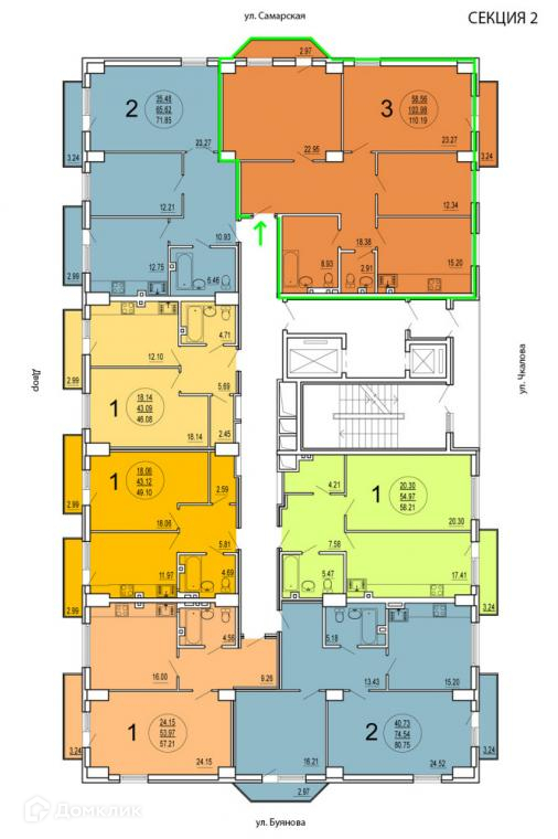 3-комнатная квартира, 110.2 м2, этаж 8 / 20, на продажу в Самаре, улица Буянова, 120