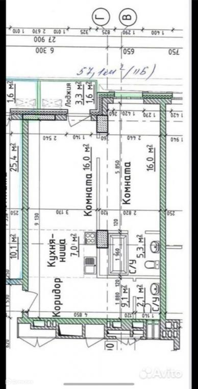 Общая площадь 57.1 м2