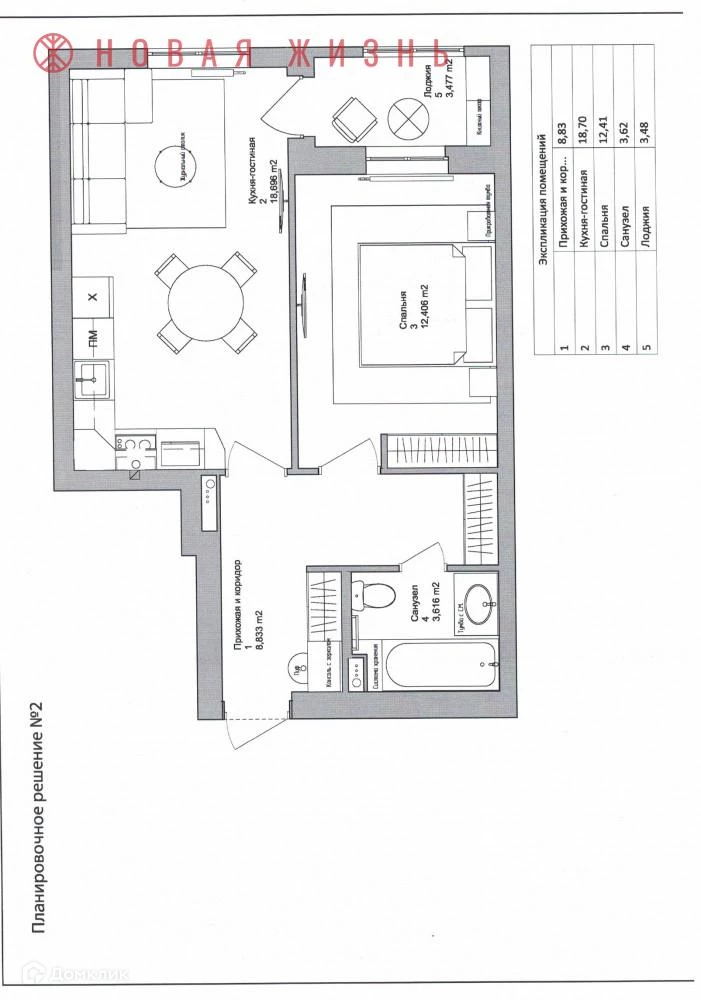 Общая площадь 43.8 м2