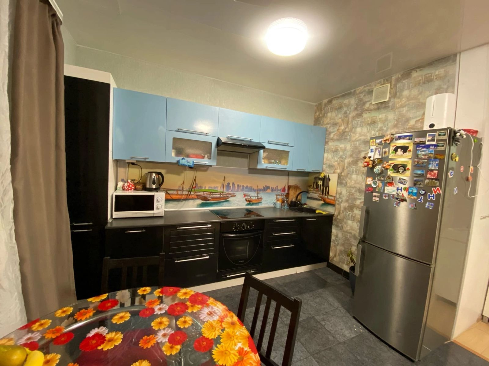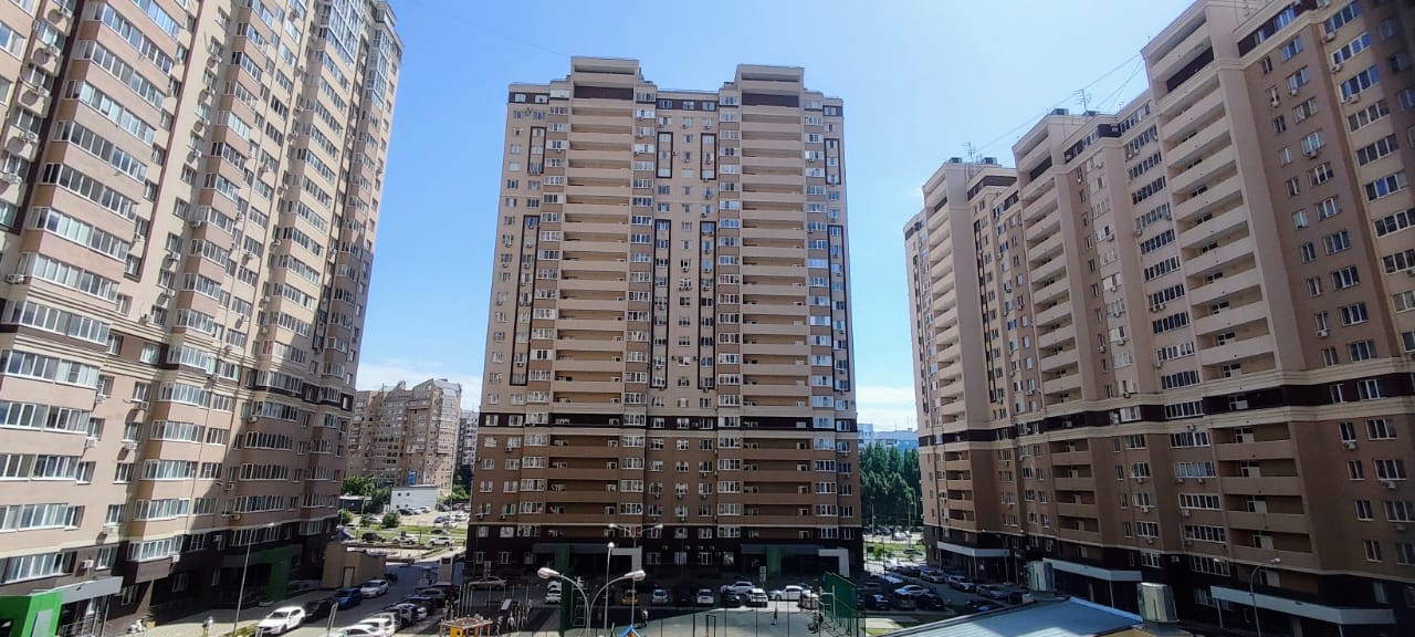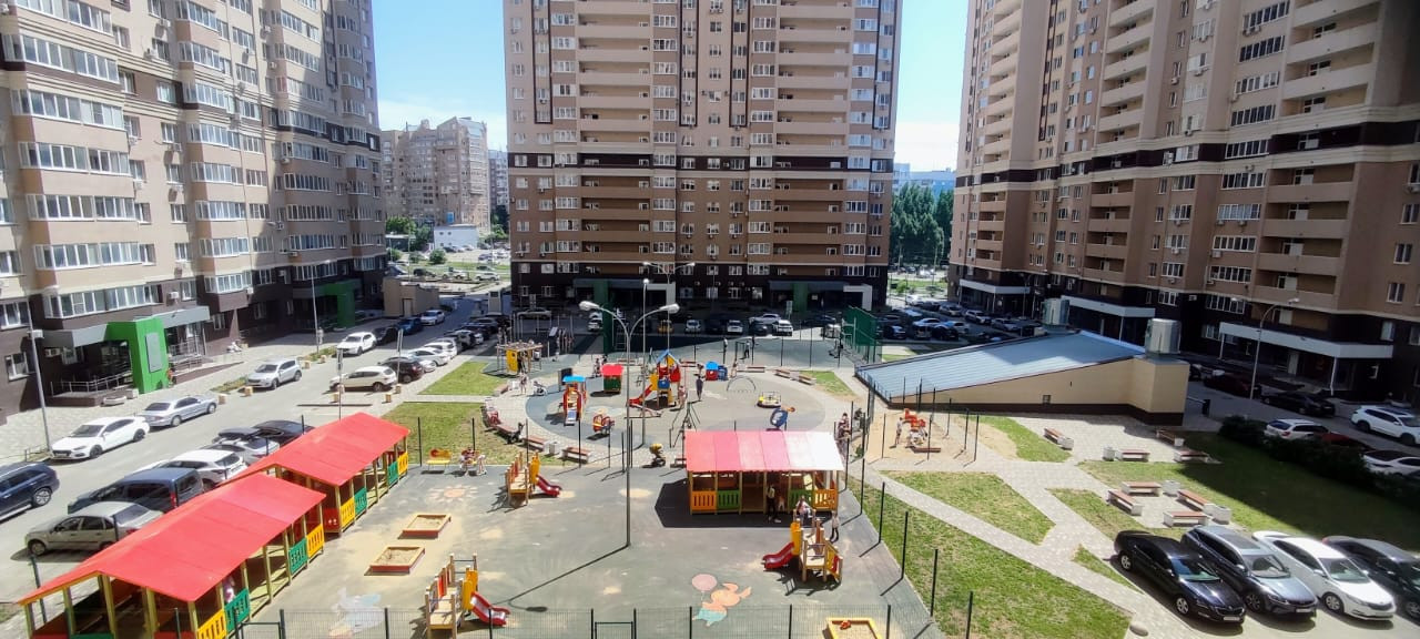 Во дворе огромные детская и спортивная площадки, однако окна квартиры в противоположную (тихую) сторону,