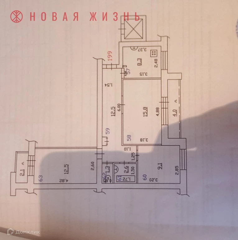 Общая площадь 63 м2