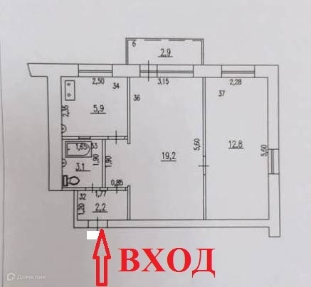 Общая площадь 43.2 м2