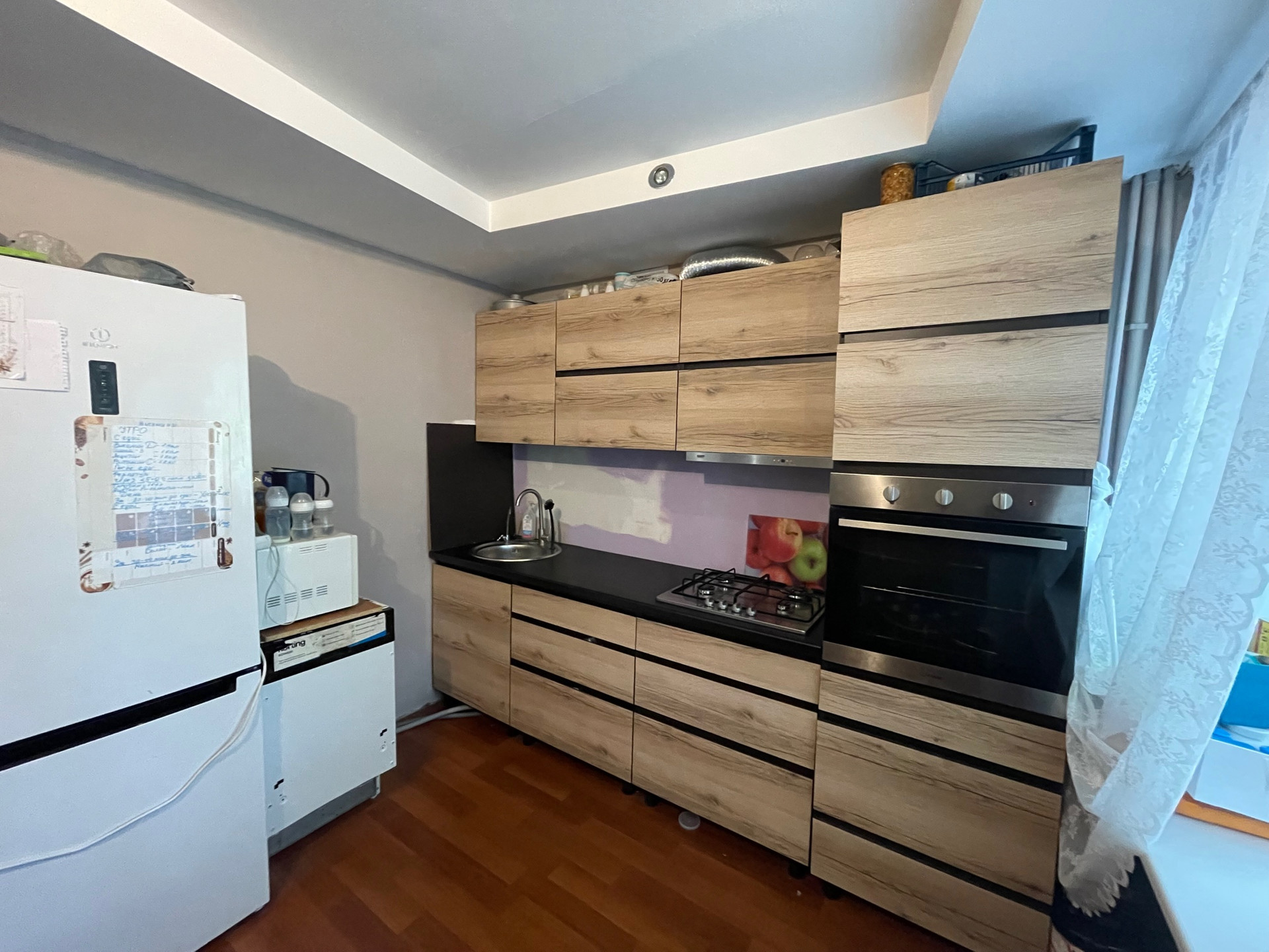 В квартире остается вся встроенная мебель: кухонный гарнитур, системы хранения вещей.