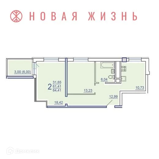 Общая площадь 65.67 м2