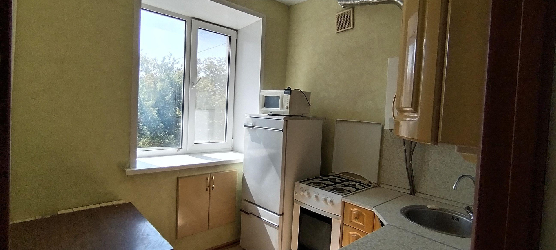 В квартире сделан косметический ремонт. Новые радиаторы отопления, пластиковые окна, натяжной потолок.