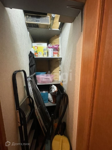 Есть 2 вместительных шкафа купе в которые влезут вообще все вещи. Так же есть отдельная кладовка на фото видно, что удобно для порядка в доме, там живут гладилка, пылесос и лестница)